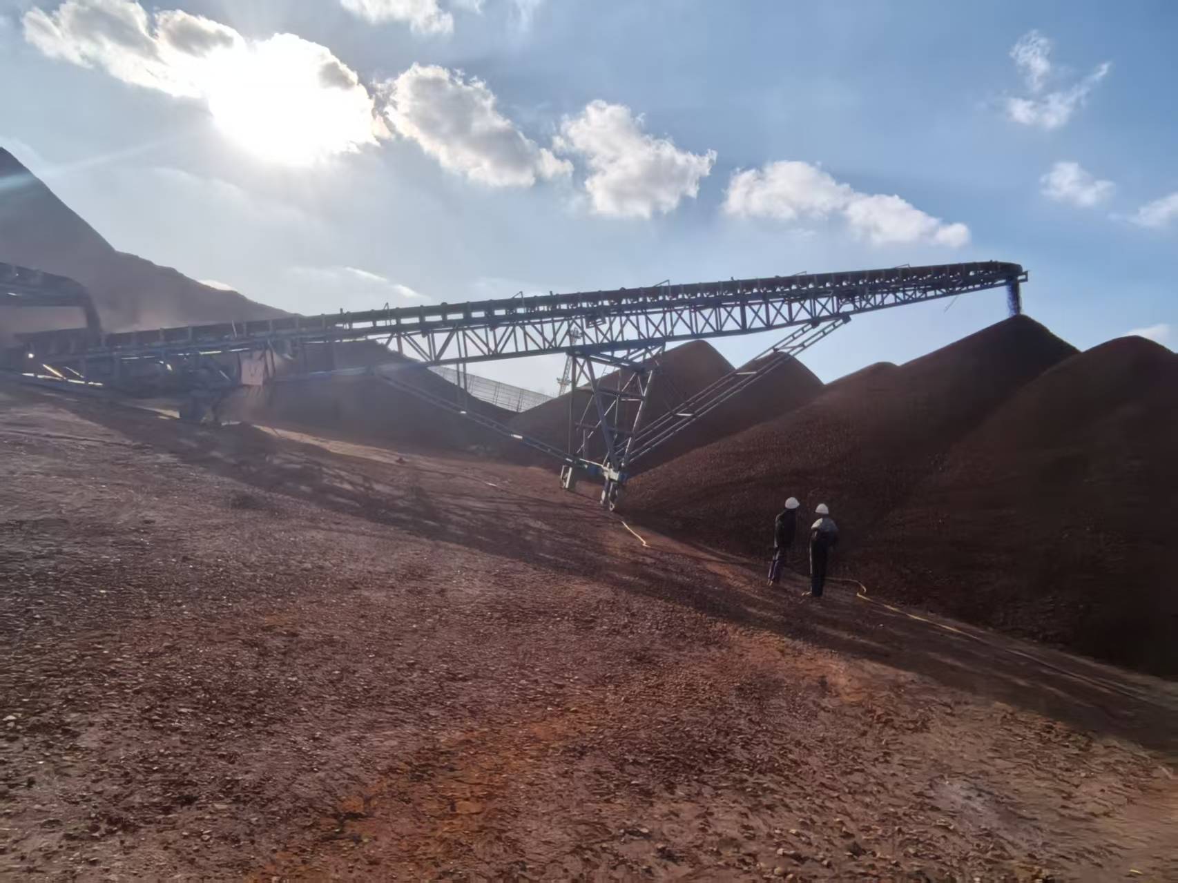 本生产线采用接料斗、移动升降皮带机、振动筛选机、布料输送机等设备组合使用,用来对铁矿石块、粉等物料进行分离、堆场,以满足客户的用料需求。